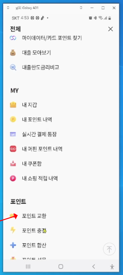 그리고 포인트 교환을 클릭해 줍니다.